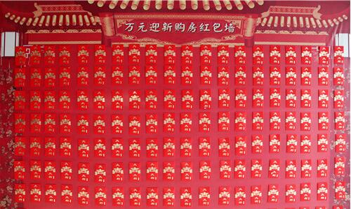 墻頂上吊下來(lái)金光燦燦的金蛋,充滿著喜慶;凡認(rèn)籌客戶即可現(xiàn)場(chǎng)砸金蛋,領(lǐng)取家電大禮;同時(shí)可以抽取最高18888元的購(gòu)房紅包(代金券)。