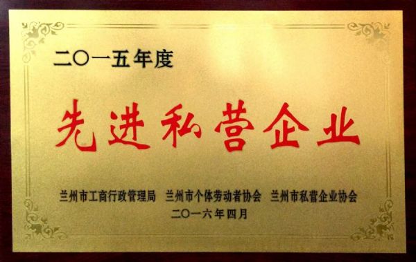 2016年4月,甘肅中集房地產開發(fā)有限公司榮獲“2015年度先進私營企業(yè)”;