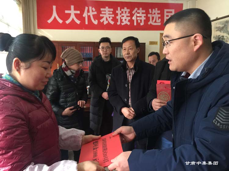 2018年2月7日上午,在2018年新春佳節(jié)即將來臨之際,甘肅省慈善總會榮譽會長、安寧區(qū)人大代表、甘肅中集集團董事長周啟濤親自安排部署,并委托集團公司黨委委員魏建峰、安 康兩位同志親自前往安寧區(qū)十里店街道辦事處,在街道黨工委副書記、人大工委主任梅鵬飛等領(lǐng)導陪同下,開展愛心送溫暖行動,為街道10戶特困家庭送上新年的祝福和慰問金。