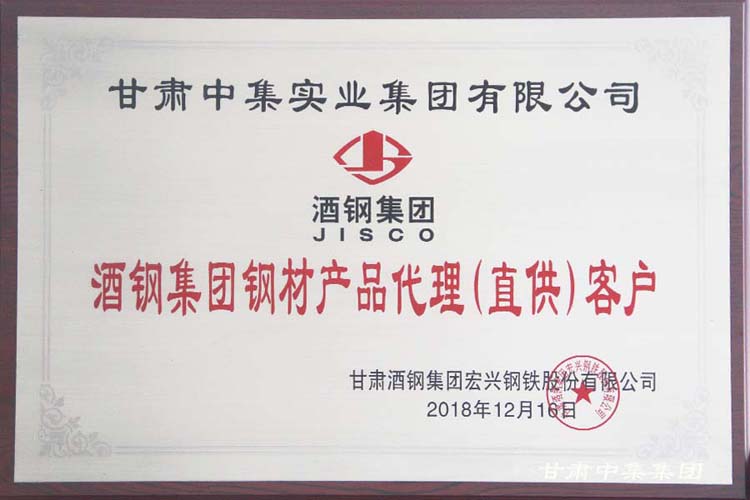 2018年12月12日,由酒鋼集團(tuán)宏興鋼鐵股份有限公司組織的“2019年酒鋼碳鋼產(chǎn)品推介暨客戶座談會(huì)”及“2018年度全國(guó)百家金牌供應(yīng)商頒獎(jiǎng)典禮”在蘭州皇冠假日酒店召開(kāi)。甘肅中集實(shí)業(yè)集團(tuán)有限公司及下屬子公司蘭州中集商貿(mào)有限公司、天水中集商貿(mào)有限公司榮獲“酒鋼集團(tuán)鋼鐵產(chǎn)品代理(直供)客戶”及“2018年度金牌代理商”殊榮。