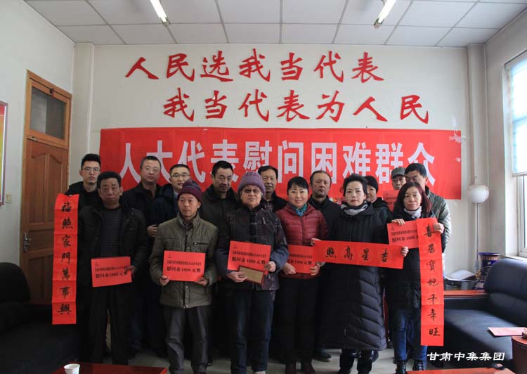2018年2月7日上午,在2018年新春佳節(jié)即將來(lái)臨之際,甘肅省慈善總會(huì)榮譽(yù)會(huì)長(zhǎng)、安寧區(qū)人大代表、甘肅中集集團(tuán)董事長(zhǎng)周啟濤親自安排部署,并委托集團(tuán)公司黨委委員魏建峰、安 康兩位同志親自前往安寧區(qū)十里店街道辦事處,在街道黨工委副書記、人大工委主任梅鵬飛等領(lǐng)導(dǎo)陪同下,開展愛心送溫暖行動(dòng),為街道10戶特困家庭送上新年的祝福和慰問(wèn)金。