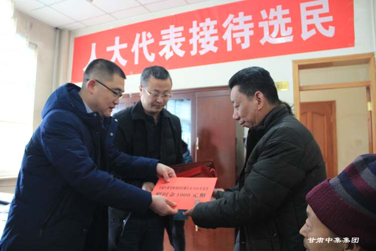 2018年2月7日上午,在2018年新春佳節(jié)即將來(lái)臨之際,甘肅省慈善總會(huì)榮譽(yù)會(huì)長(zhǎng)、安寧區(qū)人大代表、甘肅中集集團(tuán)董事長(zhǎng)周啟濤親自安排部署,并委托集團(tuán)公司黨委委員魏建峰、安 康兩位同志親自前往安寧區(qū)十里店街道辦事處,在街道黨工委副書記、人大工委主任梅鵬飛等領(lǐng)導(dǎo)陪同下,開展愛心送溫暖行動(dòng),為街道10戶特困家庭送上新年的祝福和慰問(wèn)金。